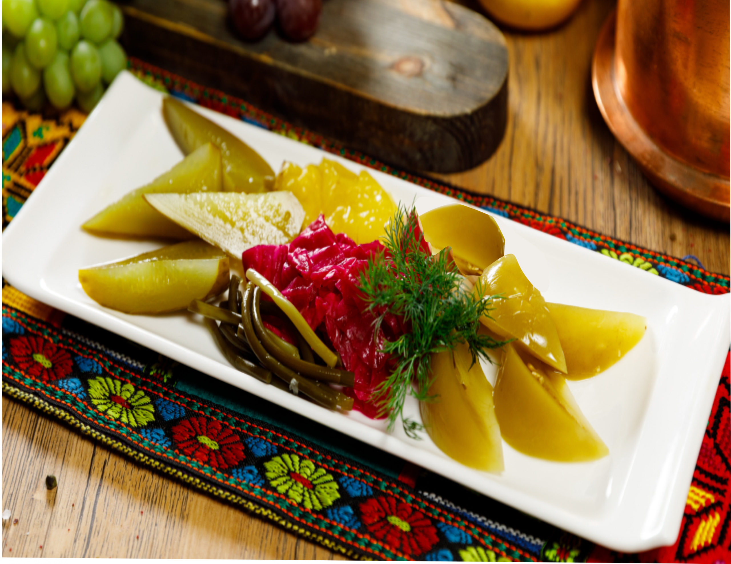 Маринованные помидоры, хрустящие огурчики, капуста и острый перец.