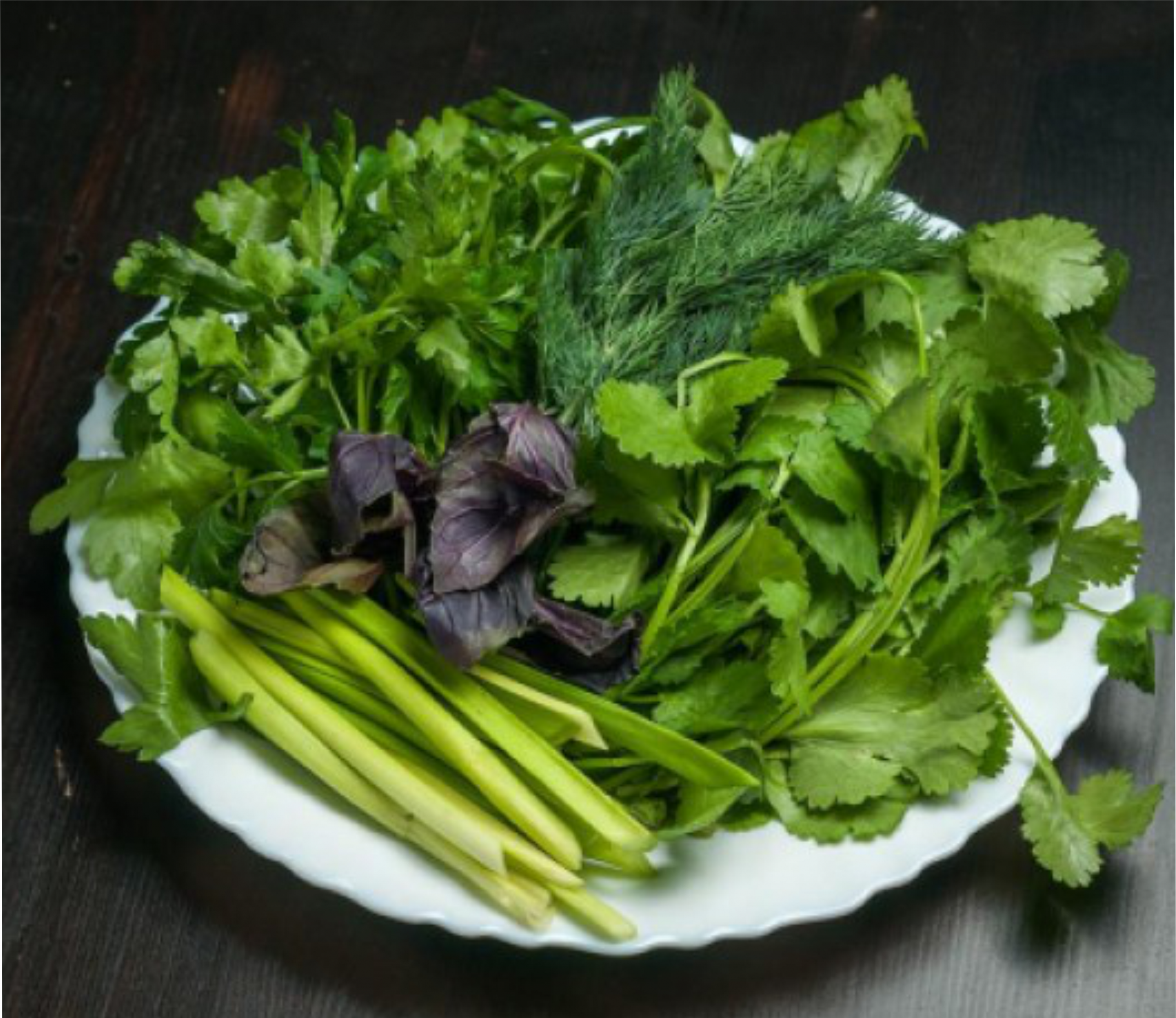 Изобилие зелени к Вашему столу: кинза, зеленый лук, , базилик.